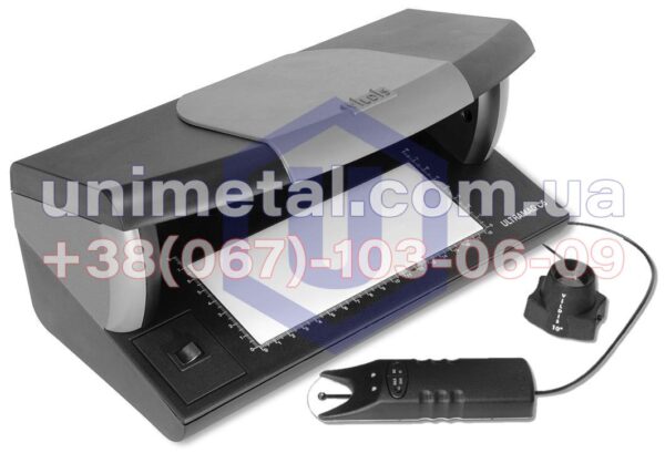 Настольный профессиональный прибор УЛЬТРАМАГ предназначен для определения подлинности банкнот, ценных бумаг, документов, акцизных и специальных марок по визуальным и машиночитаемым защитным признакам.